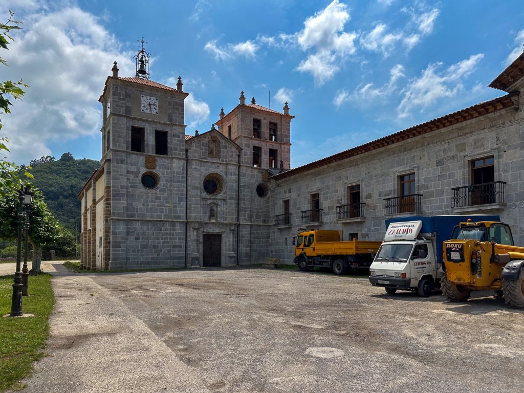 On our hike today, we walked through the forest, but we did a lot of walking on asphalt, so it was challenging to hike with the heat coming from the ground. We also saw the historic San Salvador De Cornellana Monastery, which has a rich history dating back to its foundation in 1024.